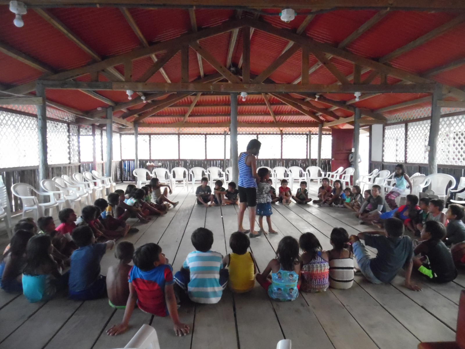 we had all the niños come to the church to play Kuna games. We had like every